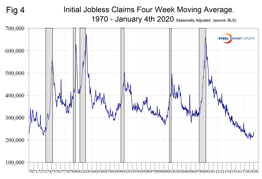 Figure 3 shows the three-month moving average of the S&P 500 early each month from January 1990 through Jan. 10, 2020. The stock market did predict the recession of 2001, but failed in 2008. Since then there have been several blips that proved to be of no significance. The tendency is that stock prices decline as investors anticipate a weakening economy and flagging corporate earnings. Fed tightening has also been a factor in the recent past.