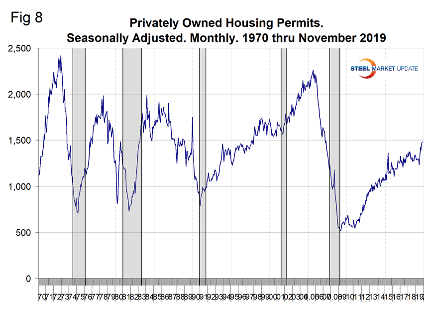 A decline in housing permits has led every recession since 1970. This seems to be a very prescient indicator. Permits have increased in four out of five months July through November, which on a 3MMA basis was 11.0 percent higher than a year ago (Figure 8). This indicator is very encouraging.