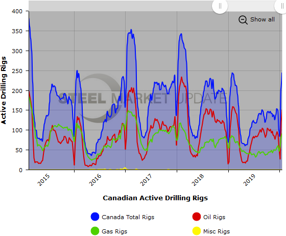 U.S and Canadian active rig counts increased this past week, according to oilfield services company Baker Hughes. The active drill rigs count is important to the steel industry because it is a leading indicator of oil country tubular goods demand.