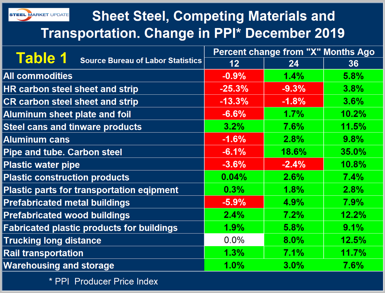 This Steel Market Update report is an analysis of Bureau of Labor Statistics data and is intended to provide subscribers with a view of the competitive position of sheet steel, aluminum, plastic and wood. The analysis includes some downstream products and a comparison of truck and rail transportation.