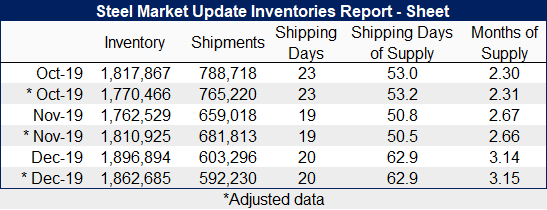 Steel Market Update’s analysis of flat rolled and plate inventories and shipments for the month of December: