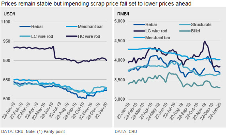 Chinese longs prices remained stable this week, as the New Year holidays meant that there were only a couple of days for business to be done. The markets are currently quiet, as most participants have left for the New Year.