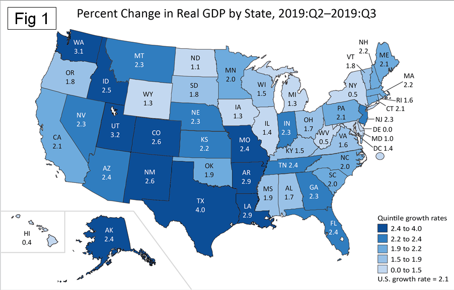 BEA: Regional GDP Growth Through Q3 2019