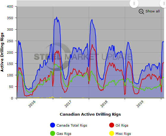 U.S active rig counts decreased this past week, while Canadian rigs increased, according to oilfield services company Baker Hughes. The active drill rigs count is important to the steel industry because it is a leading indicator of oil country tubular goods demand.