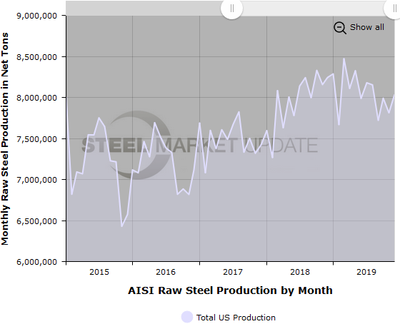 SMU Note: Interactive versions of the raw steel production graphics above can be seen in the Analysis section of our website here. If you need assistance logging into or navigating the website, contact us at info@SteelMarketUpdate.com.