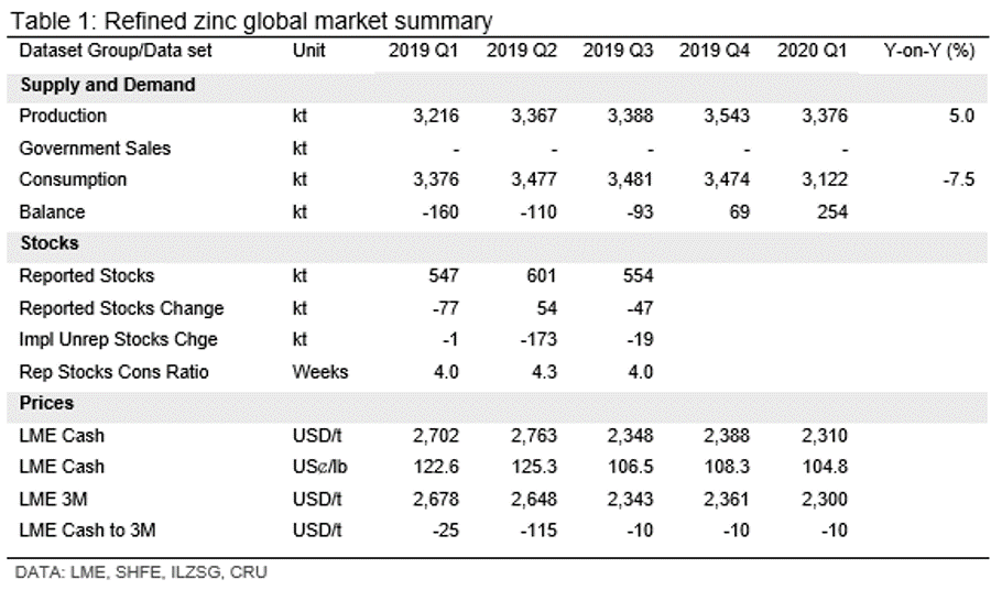 We have also revised down our estimate of refined net imports due to logistical issues and the lack of demand. We anticipate a rebound in Chinese demand in Q2 as industry ramps up after the extended shutdown to lead to a modest global deficit of 64,000 t in Q2. We estimate that the refined zinc market will register a 191,000 t global surplus in 2020 H1 and will remain in surplus for the balance of the year.