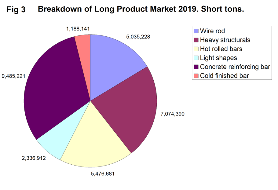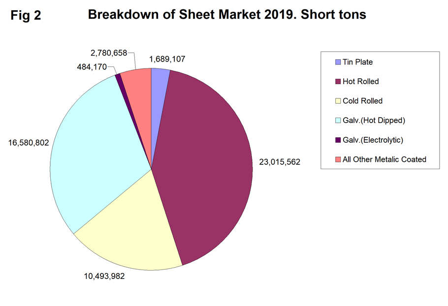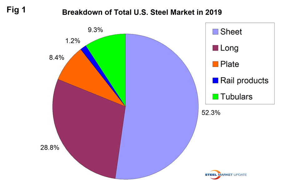 Figure 1 shows the relative size of the major sectors compiled from data from the American Iron and Steel Institute and the U.S. International Trade Commission. Sheet products comprised 52.3 percent of the market. Plate accounted for 8.4 percent, longs were 28.8 percent, tubulars were 9.3 percent and rail products 1.2 percent.