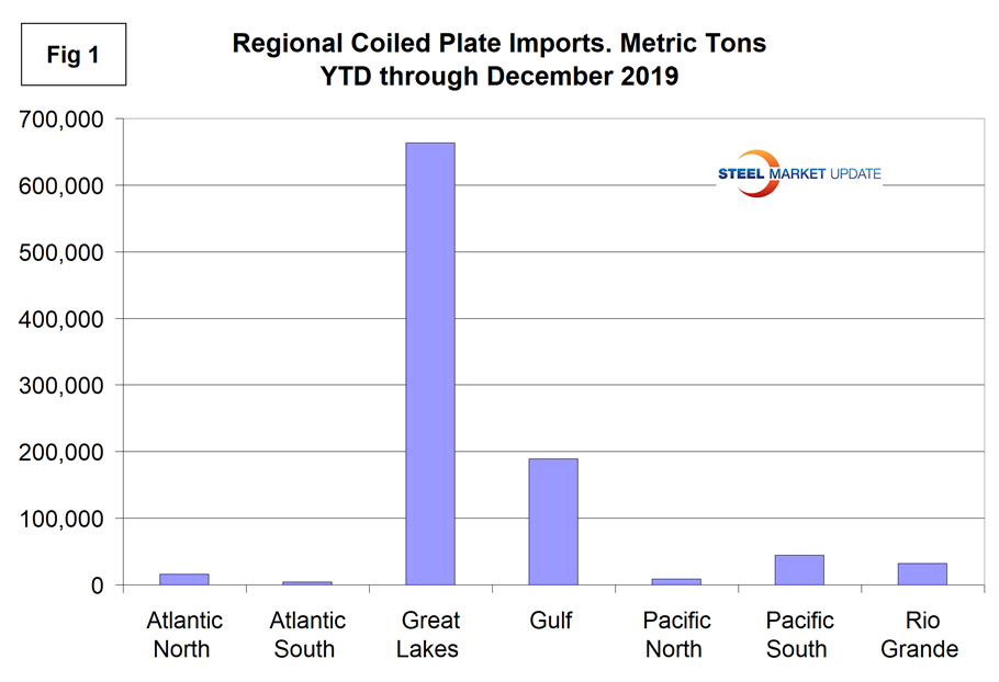 SMU presents a comprehensive series of import reports ranging from the first look at licensed data to the very detailed look at volume by district of entry and source nation. The report you are reading now is designed to plug the gap between these two. National level import reports do a good job of measuring the overall market pressure caused by the imports of individual products. The downside is that there are huge regional differences. This series of reports breaks total YTD import tonnage of six flat rolled products into seven regions and the growth/contraction for each product and region. Then it graphs the regional history of each product since 2013. We will report regional import data for each of six flat rolled products every other month. This month, we are reporting through December.