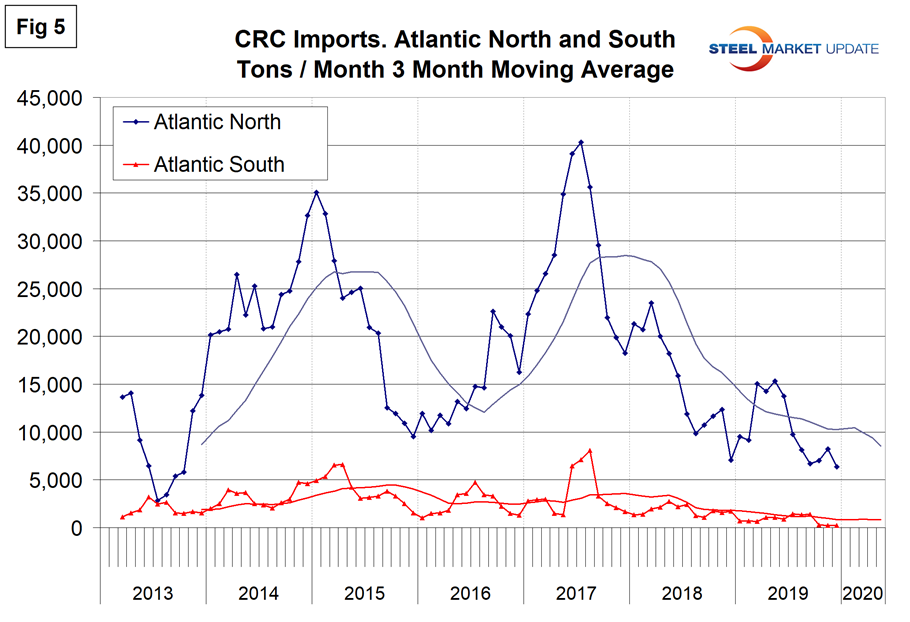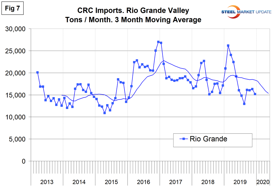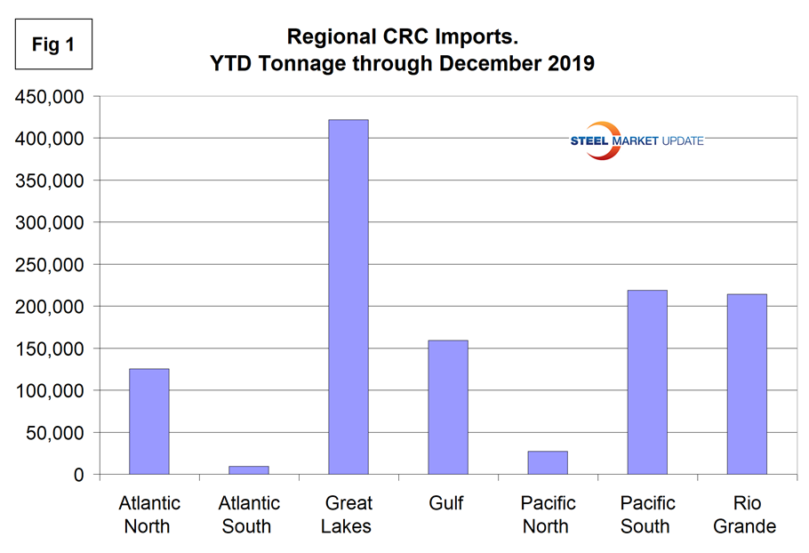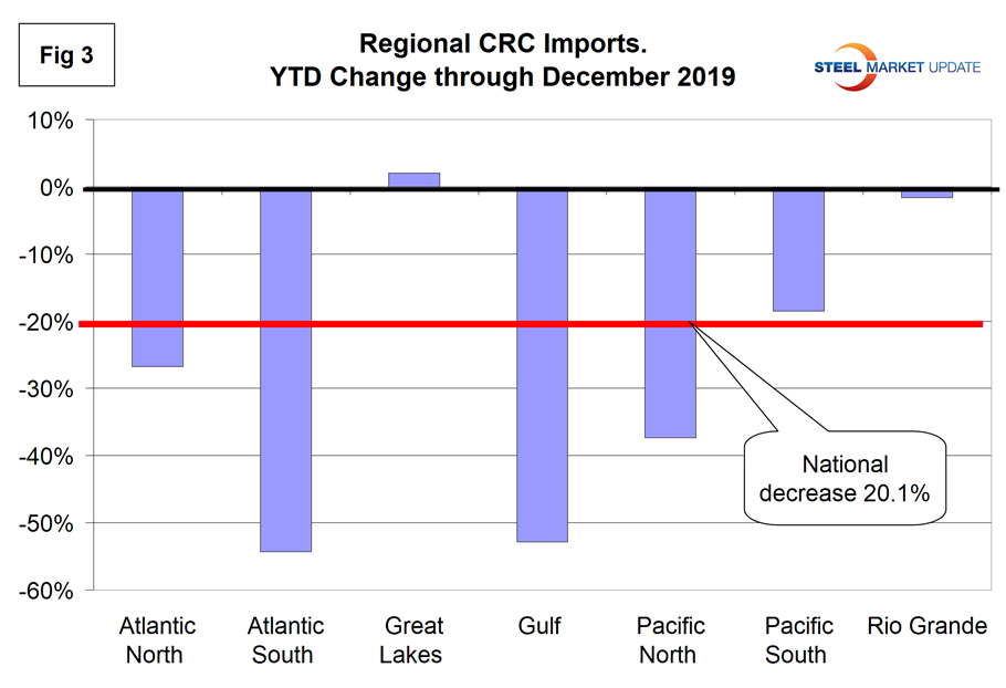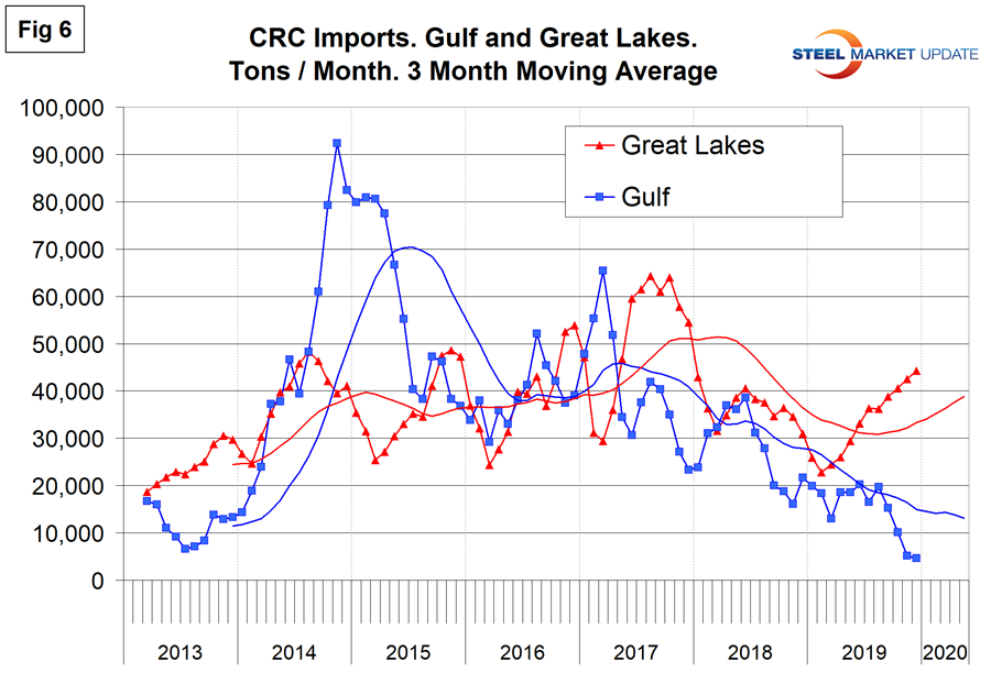 In 2019 the imports of cold rolled sheet into the Gulf and Great Lakes moved dramatically in opposite directions.