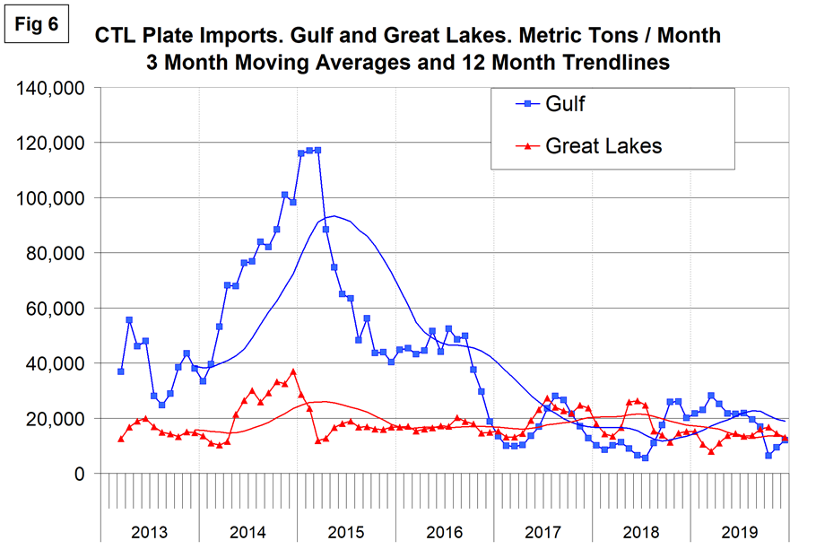In 2019, imports of cut to length plate declined in all regions except the Gulf, which increased by 45.1 percent.