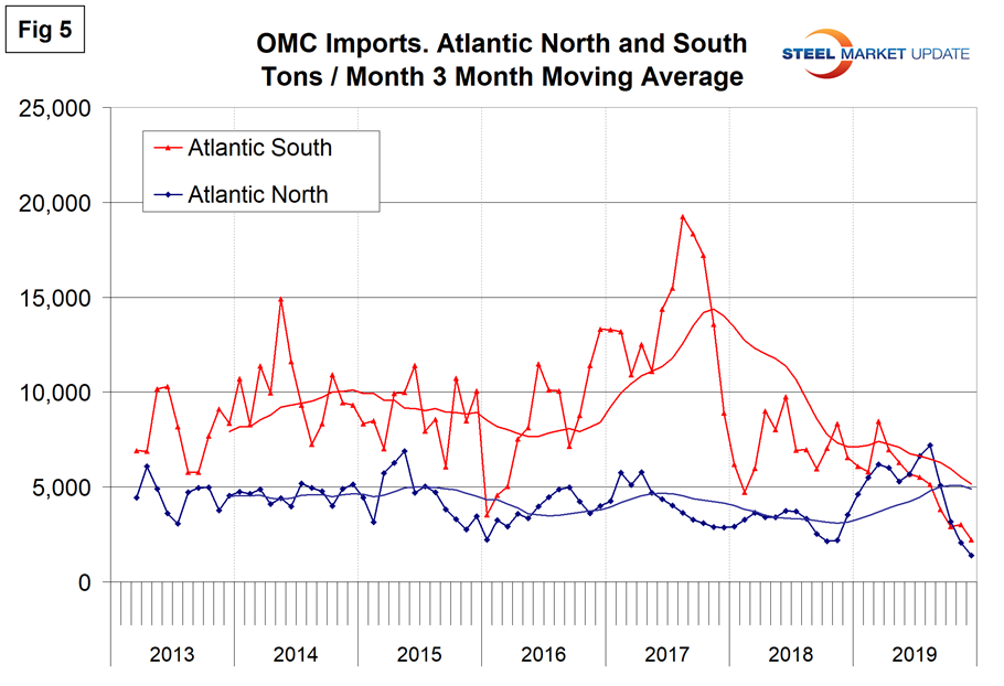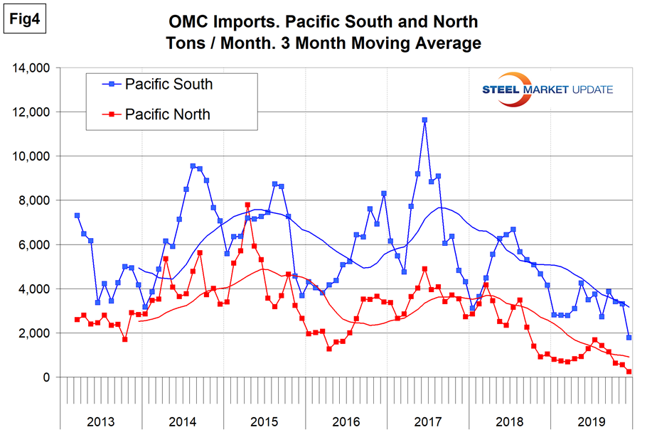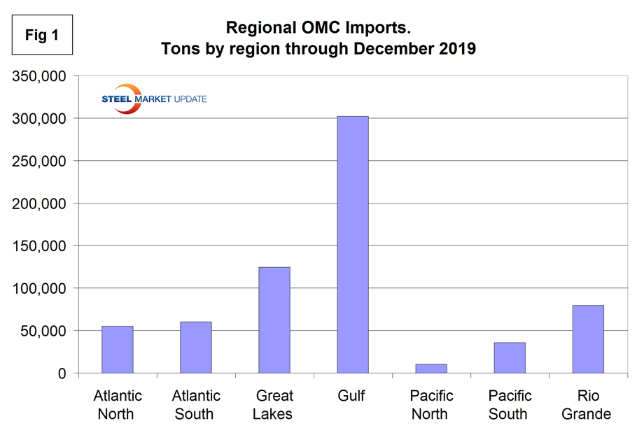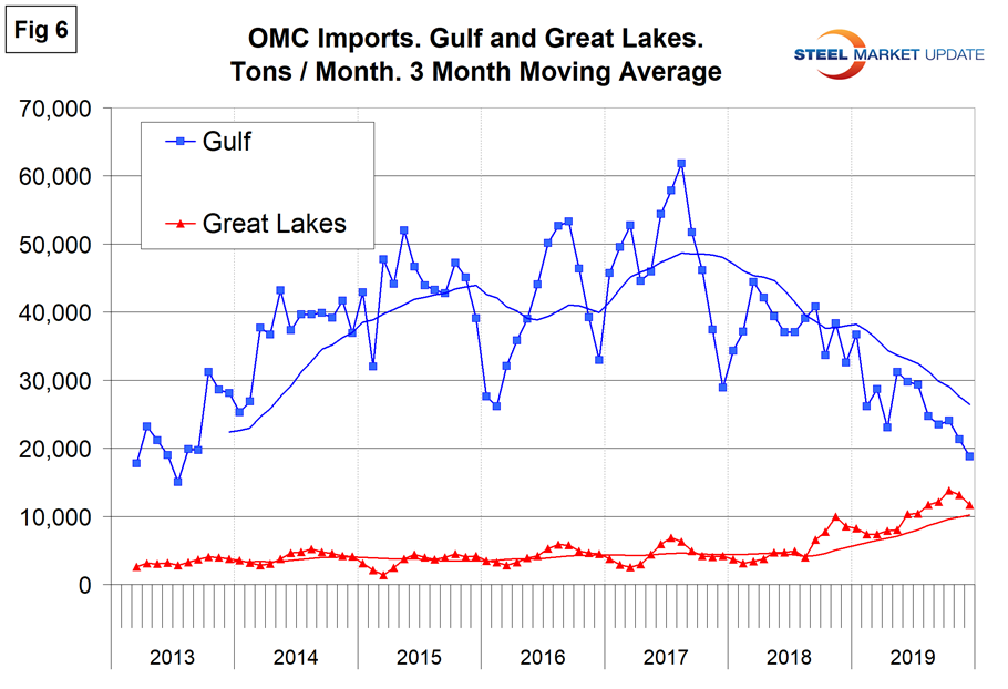In 2019, most of the imports of other metallic coated sheet (mainly Galvalume) came into the Gulf, but that volume has declined as the Great Lakes volume has increased.