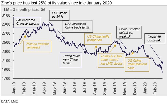 We are now seeing price levels that we were not expecting to see until 2022, when we were forecasting very low prices to bring about supply-side cutbacks necessary to rebalance surplus markets. Investors are now punishing zinc for its weak market fundamentals amid fears that the demand destruction witnessed in China in Q1 will hit much of the rest of the world in Q2.