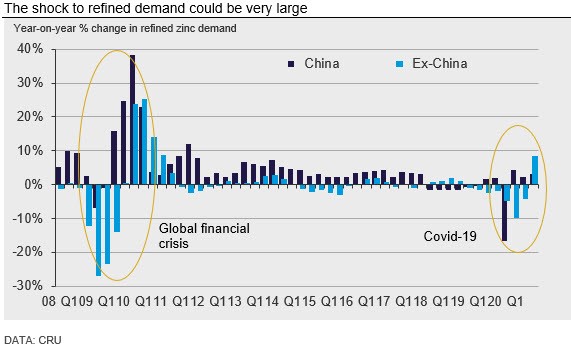 CRU: Zinc’s Price in Freefall as Covid-19 Lockdowns Spiral