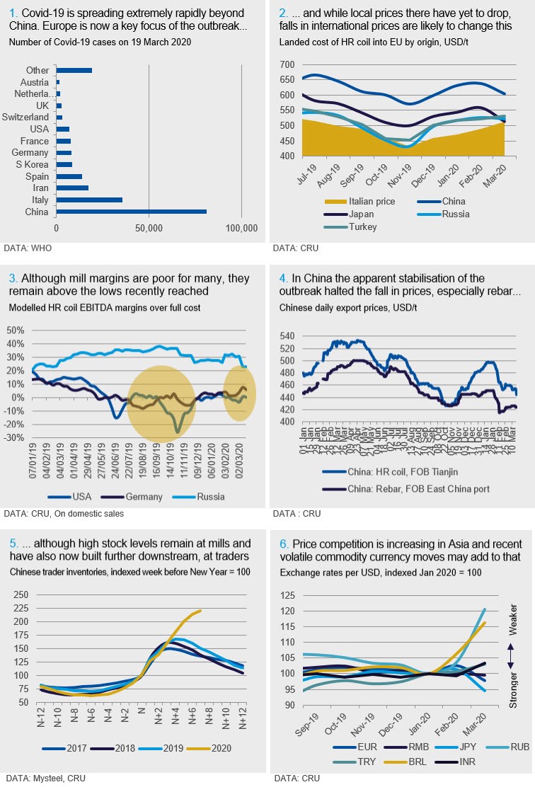 Covid-19 is now the major driver of developments in the global steel industry, as indeed it is in the wider economy. Over the past month the virus has spread rapidly outside China and its growth remains uncontrolled. Europe has become a new epicenter of the outbreak (see chart 1) but there are a huge and growing numbers of cases in many other regions.