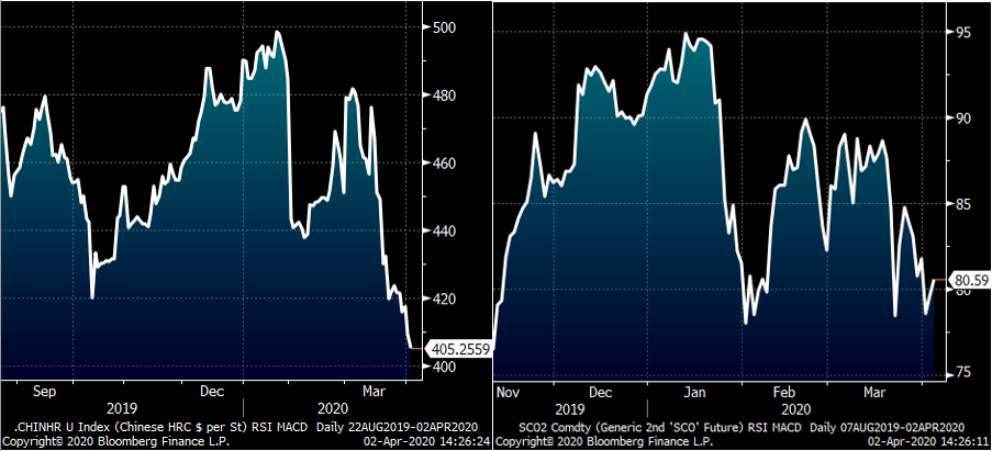 In our industry, I saw a similar pattern. First, denying the virus was an issue and expecting to run business as usual somehow. Then the initial fear was that buyers would run out of steel, which was somewhat baffling and contrary to what was happening in other commodities. Then the realization and actions taken to mitigate the threat by having many employees work from home. With some plants and offices still open with only essential workers showing up, then a worker would be diagnosed with the virus and the office or plant would have to be shut down temporarily to be cleaned. As the virus spread, plants started being shut down initially for a week, but then the return date was moved weeks out. The economy and supply chain are in disarray and while the futures were quick to reflect it, the steel indexes surprisingly held up. Finally, the indexes started to adjust sharply lower this week and the futures did as well.