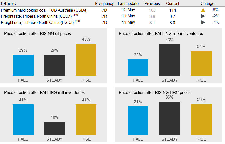 In the next week, we expect prices to hold high on low inventory levels. However, there is room for a slight correction as we expect seaborne supply to bounce back after a relatively poor week.