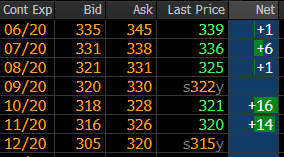 The amazing run in CME busheling has continued to reach new highs after the May future settled +$37 at $310. The curve below shows a flat curve around $300 at the start of the year (green). As markets sold off and COVID exploded, the curve crashed with June trading as low as $220 before rocketing back to last night’s settlement (red) at $338. The curve has shifted into a steepening backwardation (downward sloping).