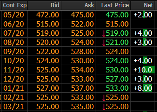 This is a snapshot of the CME Midwest HRC futures market today around mid-afternoon; $530 has provided consistent selling interest and resistance regardless of the month.