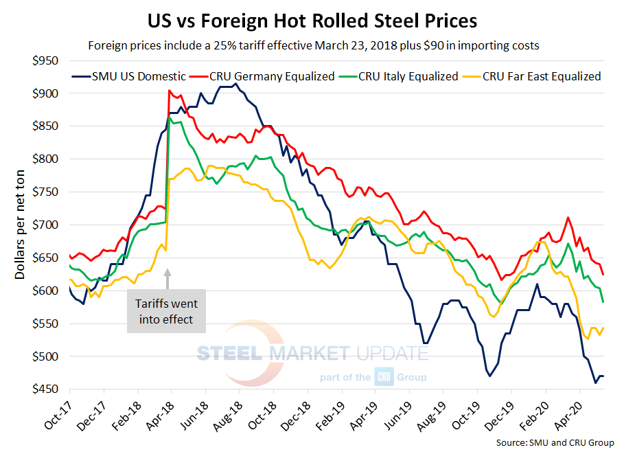 Foreign vs. Domestic Hot Rolled Steel Prices