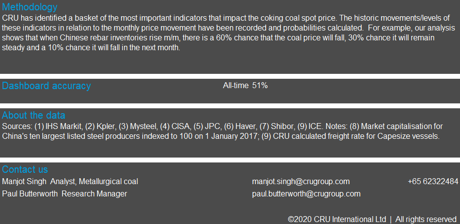 In India, the government announced a $265bn special economic package last week to boost the domestic economy. But some market participants believed that there might not be major implications on the steel industry in the very short term. Having said that, manufacturing activity in India continues to improve moderately, but coal stocks at ports remain high. Elsewhere, we noticed that European coal intakes this month have lifted after 12 weeks of consecutive yearly declines.