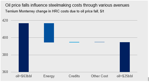 The effect of an oil price fall on steelmaking costs varies depending on where the steel mill is located and the iron and steelmaking technology being utilized. In addition, the degree to which regional natural gas prices move with respect to oil prices is also important.