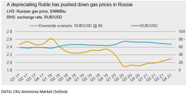 In Russia the responsiveness of Russian NG prices to global oil benchmarks is limited by the dominance of Gazprom in the regional market, which is majority owned by the Russian government. Gazprom set natural gas prices annual in Rubles, this has meant that the recent depreciation of the Ruble has decreased prices in U.S. dollar terms, further improving the competitive position of low cost Russian steel exporters and intensifying price competition in key export markets.