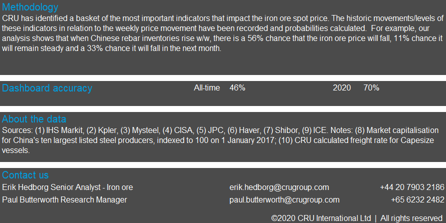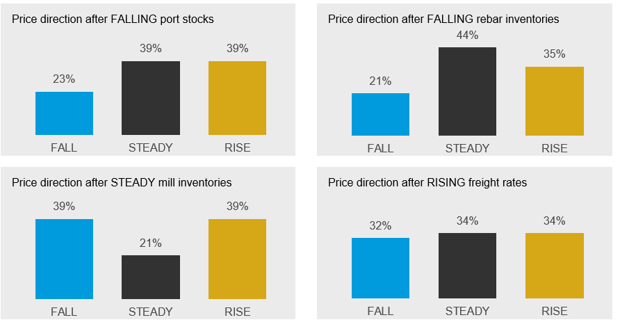 The sentiment in the Chinese steel industry has shifted in the past week and we expect the pessimism to persist. Arrivals to China will increase in the coming week due to recent strong Australian supply and a high chance that port inventories have reached their bottom. We maintain the view that we can see further price falls in the coming week.