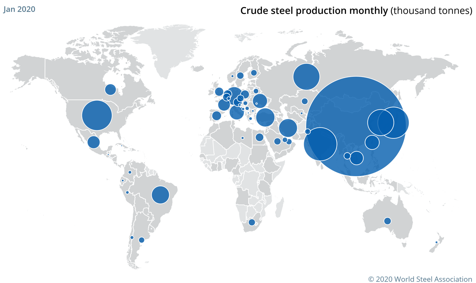 Figure 8 is a schematic from the WSA showing the relative production of the major steel producing nations in January. This doesn’t change on a short-term basis so we haven’t updated it. Its purpose is to show relative magnitude.