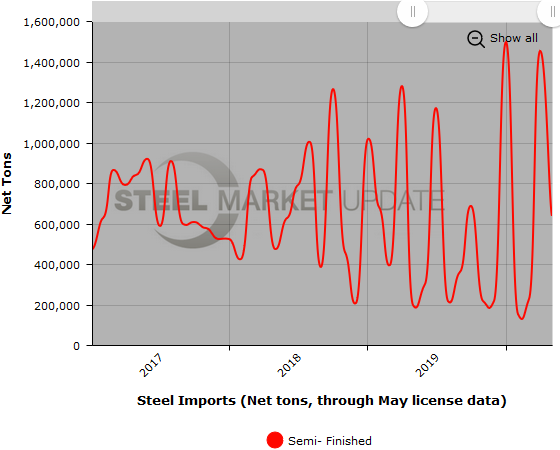 Note: The January, April, July, and October import figures are unusually high as a result of buyers seeking to max out quarterly quota limits on semifinished products. For the remainder of each quarter, final semifinished imports are significantly lower. Due to these month-to-month swings, SMU has ceased monthly import “trending” projections and now only shows unadjusted figures as reported by the Commerce Department.
