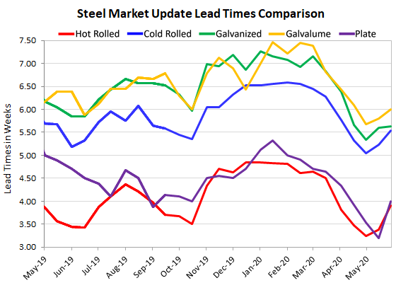 Lead times for steel delivery were expected to extend as businesses reopened and steel demand improved. The market will be watching closely to see what happens to lead times when the mills begin to bring back idled capacity.