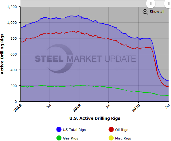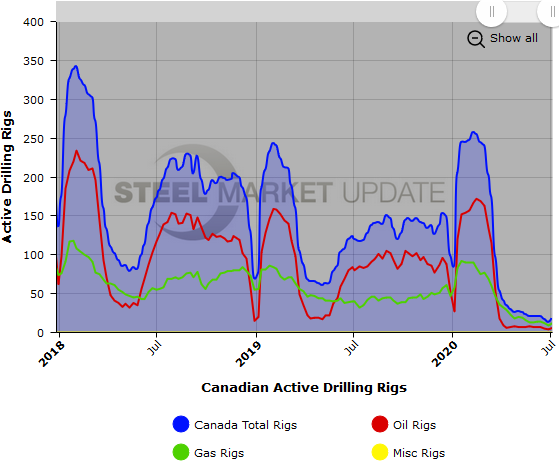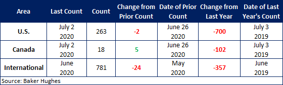 International rigs decreased by 24 to 781 rigs for the month of June, a decrease of 357 rigs from the same month one year ago. For a history of both the U.S. and Canadian rig count, visit the Rig Count page on the Steel Market Update website here.