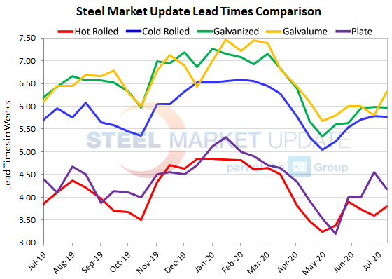 The slight increase in the lead time for hot rolled is the only such indicator even hinting yet at new demand for flat rolled steel as the economy struggles to recover from a coronavirus that appears to be surging in many parts of the country.