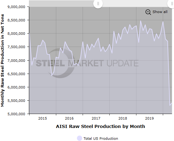 May U.S. Raw Steel Production at 5.4 Million Tons
