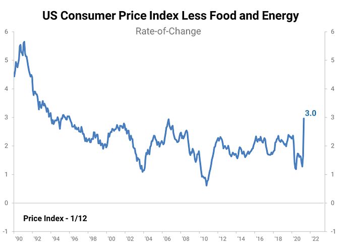 As ITR Economics reported in a recent blog, there is quite a bit of discussion regarding the threat of inflation and its attendant impact on interest rates. The CPI Less Food and Energy (so-called Core Inflation) is a close proxy for the inflation gauge the Fed uses. You can see that the Core Inflation rate rose to 3.0% in April. A 3.0% rate is noteworthy, but it is not cause for alarm if you are concerned about the Fed deciding it is time to move interest rates higher in order to curtail any imbedded inflationary pressures. They have indicated that they will tolerate a higher rate of inflation going forward for as long as a couple of years in order to balance out the periods when the Core Inflation rate was running below 2.0%. Bottom line: even with energy up 25.1% in April from one year ago, the Fed is not expecting the increased inflation rate to endure long enough to force their hand and push interest rates upward.