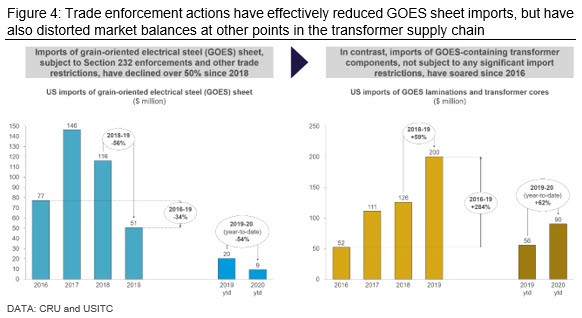 Accordingly, trade actions focused on imported GOES sheet have not necessarily helped boost demand for GOES marketed by domestic producers. In reality, transformer manufacturers have re-aligned their global supply chains to sidestep these restrictions and sustain their businesses, while the middle portion of the supply chain—domestic laminators and other intermediary processors of GOES sheet—has encountered a shrinking addressable market.