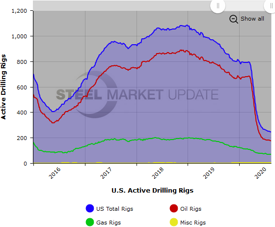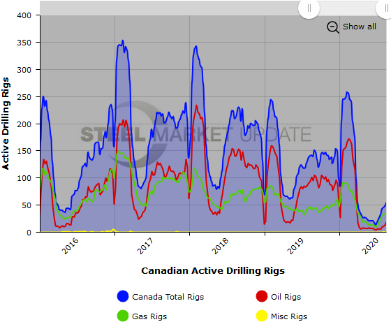 Active U.S and Canadian gas and oil rigs were mixed this past week, according to oilfield services company Baker Hughes. The active drill rigs count is important to the steel industry because it is a leading indicator of oil country tubular goods demand.