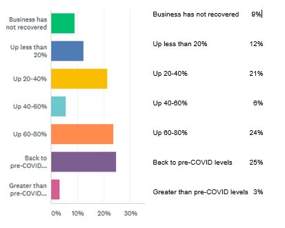 In the latest market canvass this week, SMU asked: How much has your business recovered from the low point you experienced after the virus hit? The response: