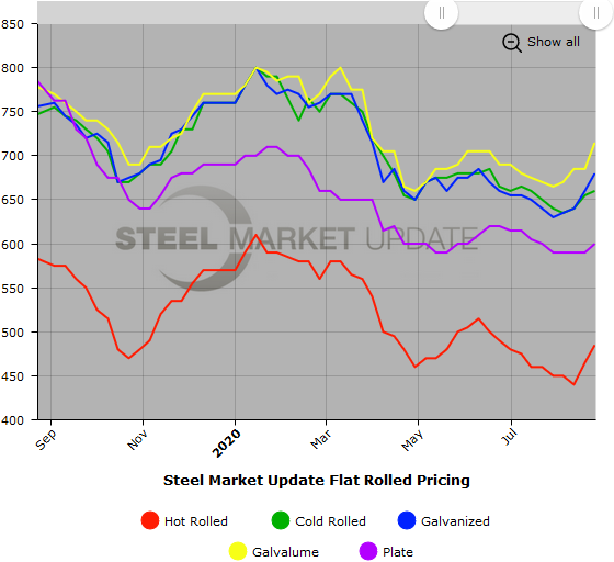 SMU Note: Below is a graphic showing our hot rolled, cold rolled, galvanized, Galvalume and plate price history. This data is available here on our website with our interactive pricing tool. If you need help navigating the website or need to know your login information, contact us at info@SteelMarketUpdate.com.