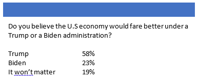 On the political front, more than 50 percent of the respondents believe the economy would fare better under a Republican administration and President Trump should get a second term. It’s worthy of note that in 2016 when Hillary Clinton was seen as the frontrunner, Donald Trump received 48 percent of the vote in the steel summit poll vs. Clinton’s 22 percent. This year it’s closer, with conference attendees favoring Trump over Joe Biden 53 percent vs. 41 percent.