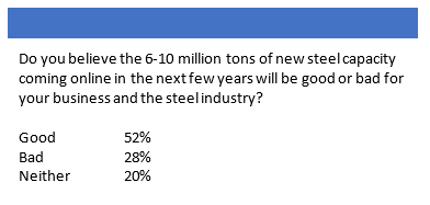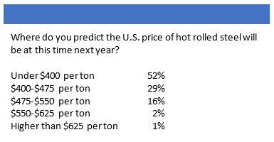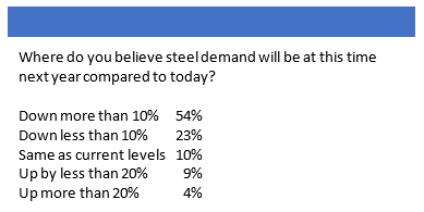 The “crowd” at this year’s Steel Market Update Virtual Steel Summit was a conservative and somewhat pessimistic one, judging by polling data gathered during the event this week. SMU posed eight questions to the 900 industry executives who registered for the summit and this is the breakdown of their opinions.