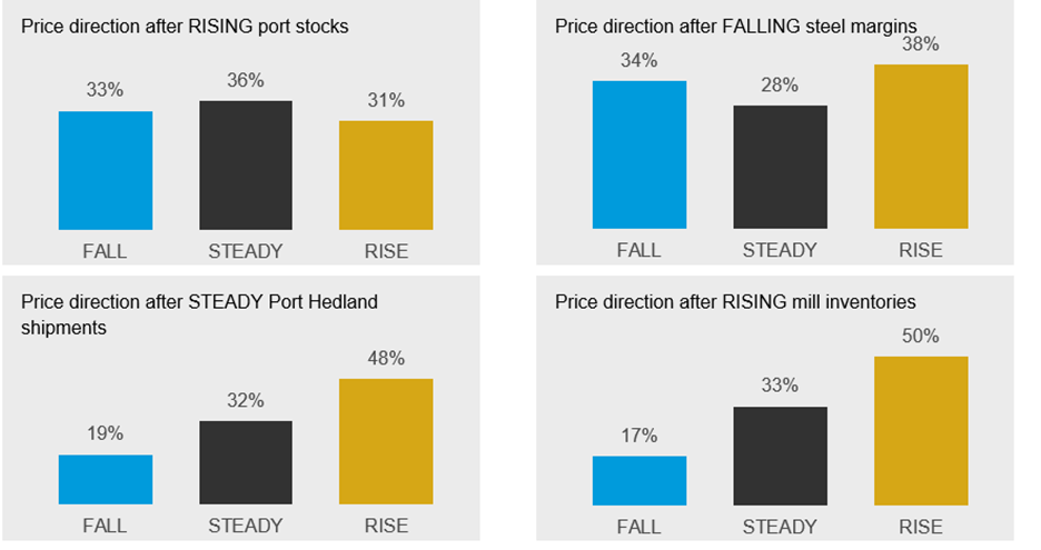In the coming week, we expect iron ore prices to remain steady as China enters its national holiday period and spot buying activity stops. Further ahead, lower steel margins and higher iron ore port inventories linked to the strong seaborne supply and the expected reduction in the vessel queue at Chinese ports will likely continue to pressure iron ore prices downwards.