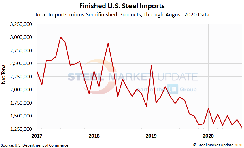 Recently released Census data shows final July steel imports totaled 2.70 million net tons, up 93 percent from June due to the quarterly reset on semifinished import quotas. This final July figure is just 5,995 tons higher than the preliminary import figures SMU reported one week ago.