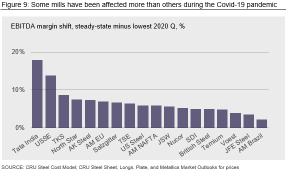 Some steel mills have been more sensitive to the current, Covid-19 related, downturn; steel mills that are more exposed to construction sectors have been less affected. In addition, the recovery, while following the same general trend, will not be equal across regions, and we need to understand structural changes to costs and prices to fully understand profit performance on a more granular level.