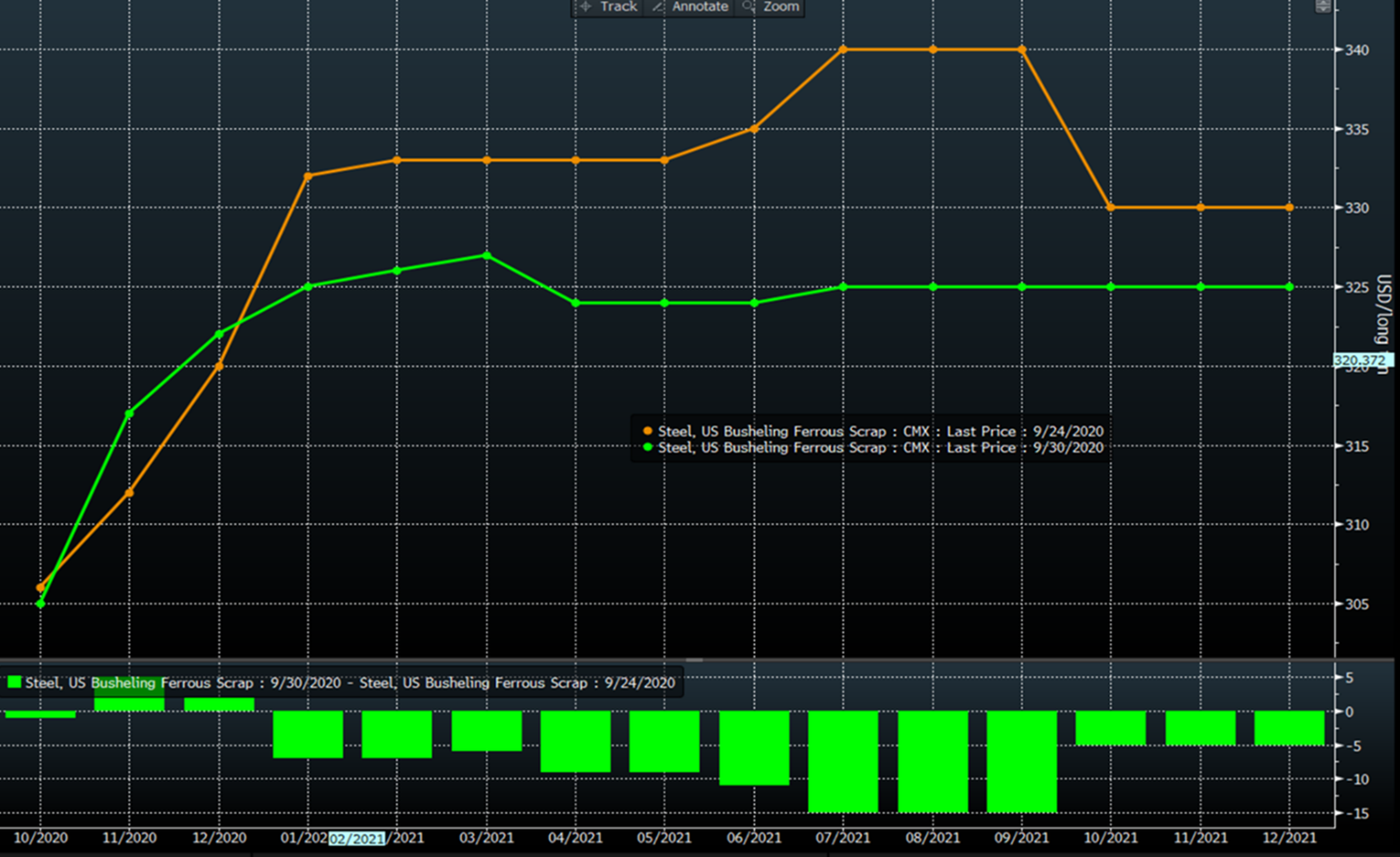Perhaps just as interesting was the movement in the busheling scrap curve, which actually moved lower in all of the 2021 months.