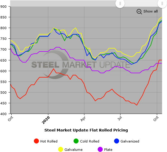 SMU Note: Below is a graphic showing our hot rolled, cold rolled, galvanized, Galvalume and plate price history. This data is available here on our website with our interactive pricing tool. If you need help navigating the website or need to know your login information, contact us at info@SteelMarketUpdate.com.