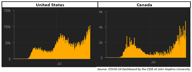 New Daily CoVID Cases USA & Canada