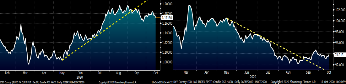 Or is it that the dollar looks to have bottomed and is perhaps rallying while the euro falls? Europe is having a massive COVID outbreak that is forcing cities like London and Paris to effectively shut down.