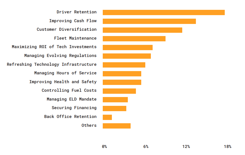 The transportation and logistics industry has undergone a technological revolution in recent years, but research shows that many industry players have been left behind. Small and mid-sized truck fleets with less diversified customer bases are disproportionately at risk of cash flow problems that hamper their investments in new technology. Even half of the large carriers (500+ trucks) surveyed said refreshing technological infrastructure is among their companies’ biggest challenges.