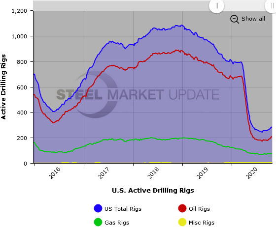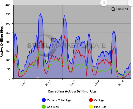 The number of active U.S and Canadian gas and oil rigs increased yet again this past week, according to oilfield services company Baker Hughes. The active drill rigs count is important to the steel industry because it is a leading indicator of oil country tubular goods demand.
