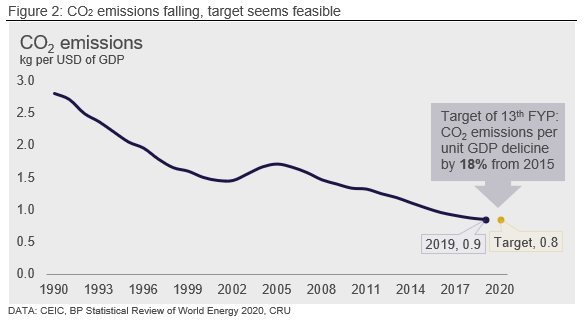 SOURCE: China’s 13th and 14th Five-Year Plans: Review and Advice; News (CN); SCIO (CN); Xinhua1 (CN); Xinhua2 (CN); China’s government website (CN); BP Statistical Review of World Energy 2020; CRU